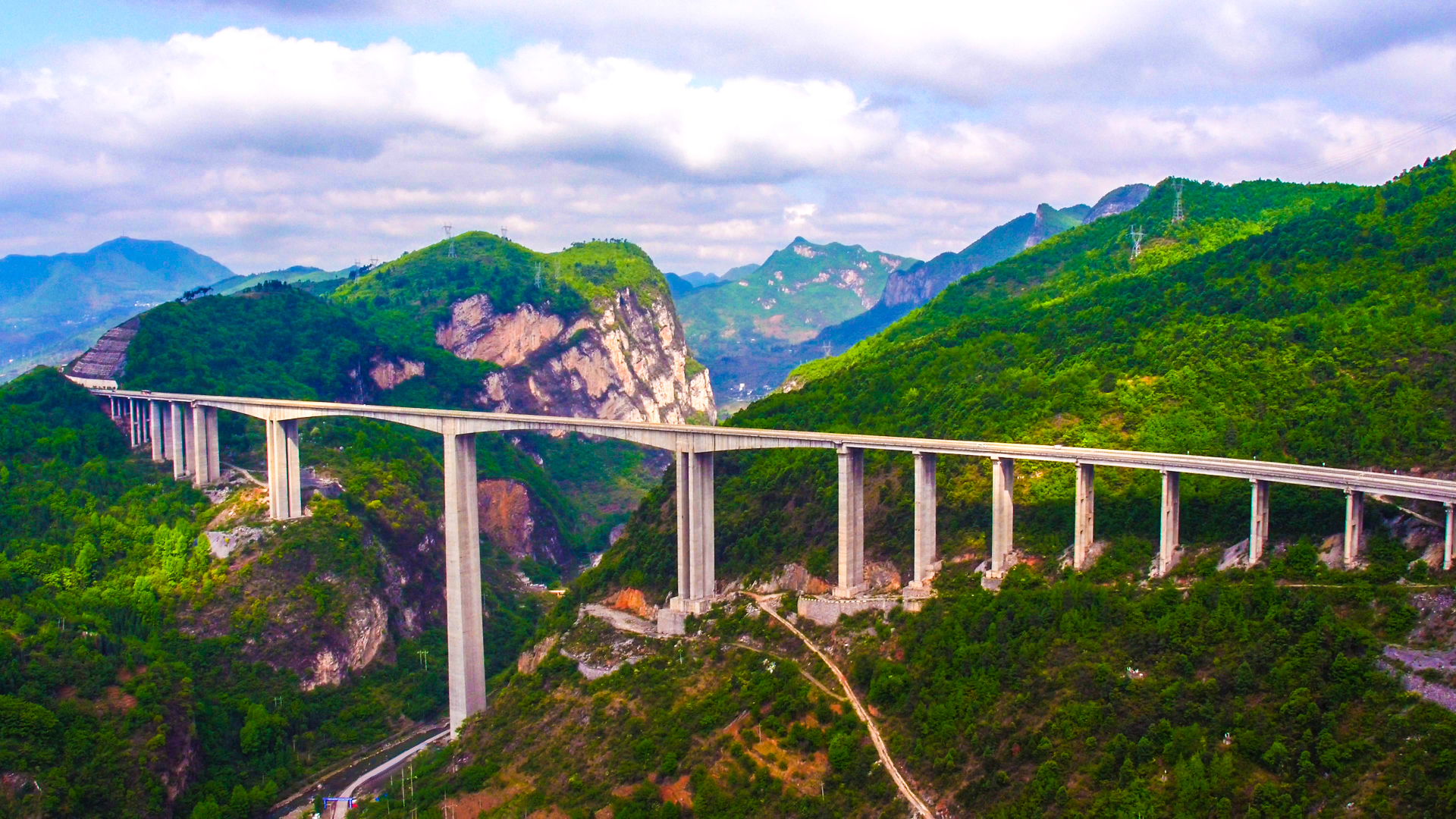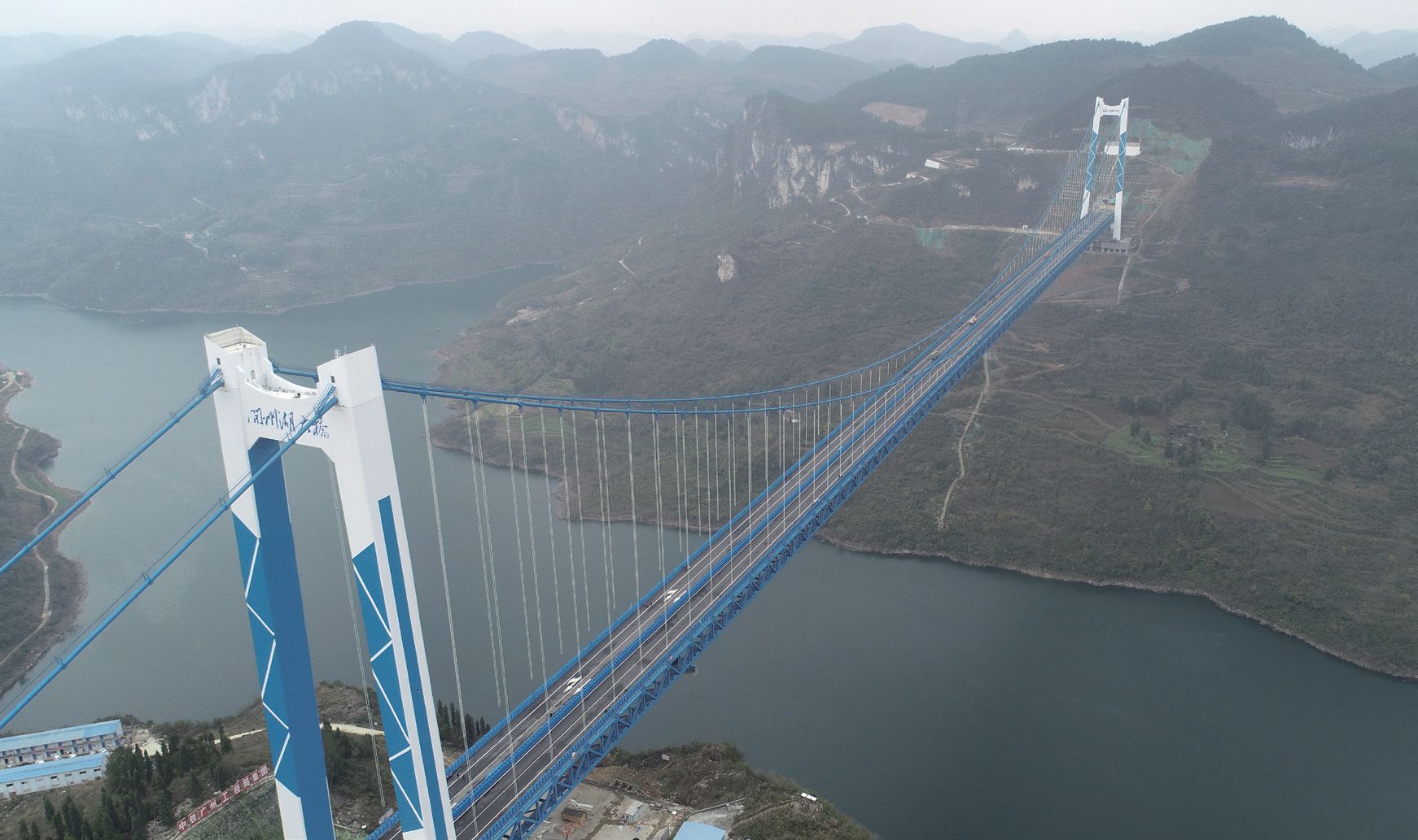 开州湖特大桥,属于瓮开六标重难点及控制性工程,横跨洛旺河峡谷,全长1257m。桥跨安排为3×30mT梁+1100m单跨钢桁梁悬索桥+2×30mT梁,主桥为1100m单跨钢桁梁悬索桥,主缆边跨为143m...